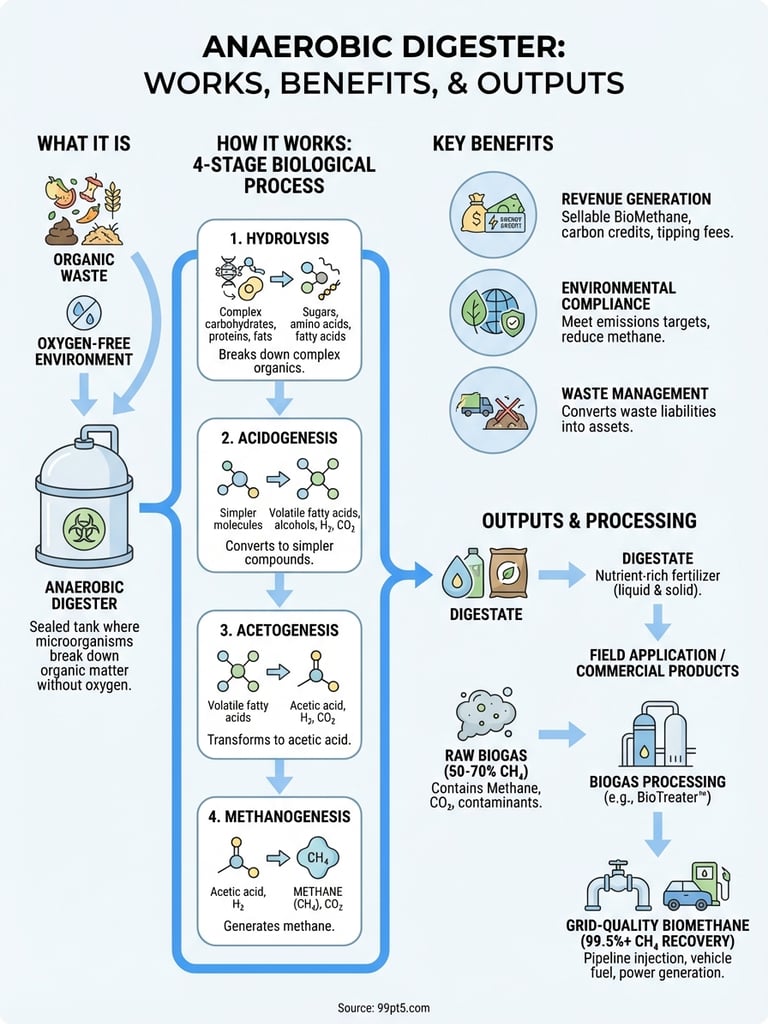 Learn how an anaerobic digester turns waste into revenue. Explore the biological process, key benefits, and how to maximize biogas and digestate outputs.
