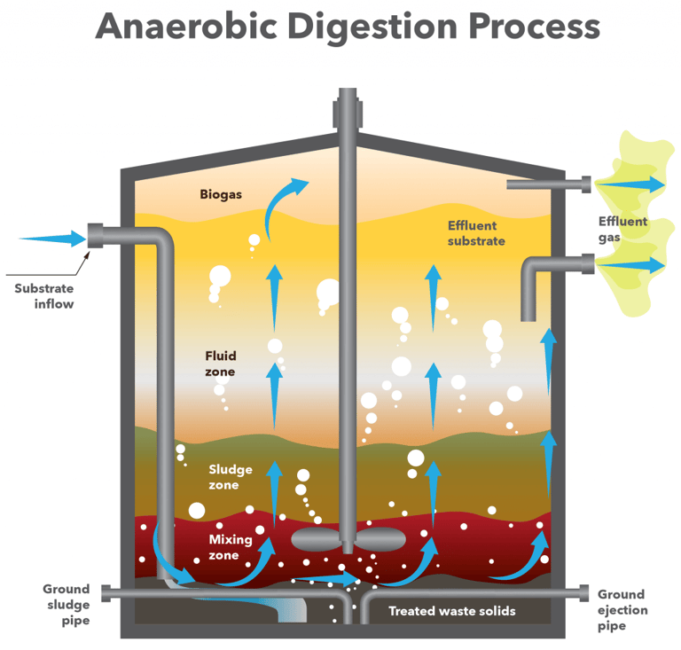 Anaerobic digestion is a natural biological process where microorganisms break down organic materials without oxygen. Think of it as controlled decomposition happening inside sealed tanks. Bacteria consume feedstocks like agricultural waste, food scraps, or animal manure in these oxygen-free environments called digesters. The process produces two valuable outputs: biogas (a mixture primarily of methane and carbon dioxide that you can combust for energy) and digestate (a stabilized, nutrient-rich material that works as fertilizer). This technology converts waste streams into revenue streams while reducing greenhouse gas emissions from organic decomposition.