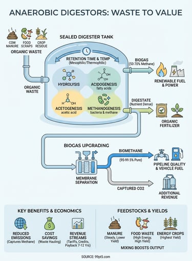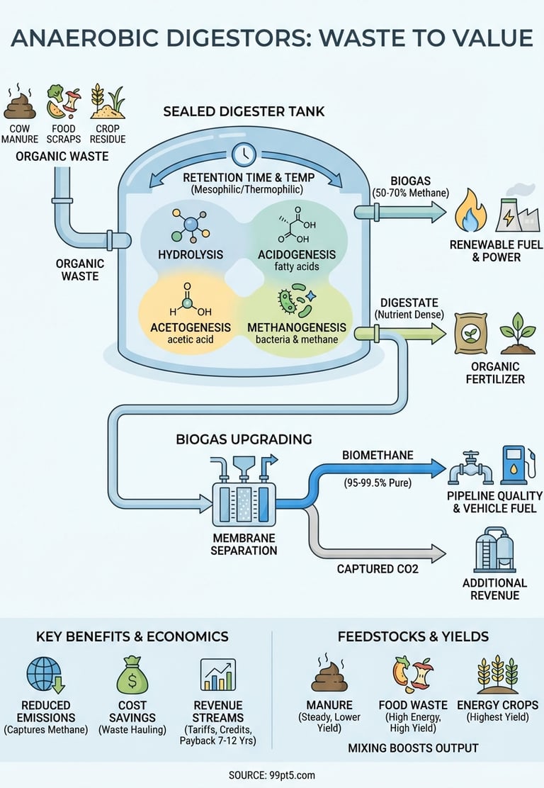 An anaerobic digester is a sealed tank where bacteria break down organic waste without oxygen. This controlled process converts materials like manure, food waste, and crop residues into two valuable products. You get biogas that can generate power or heat. You get digestate that works as a natural fertilizer. The system captures methane that would otherwise escape into the atmosphere and turns it into energy you can use or sell.