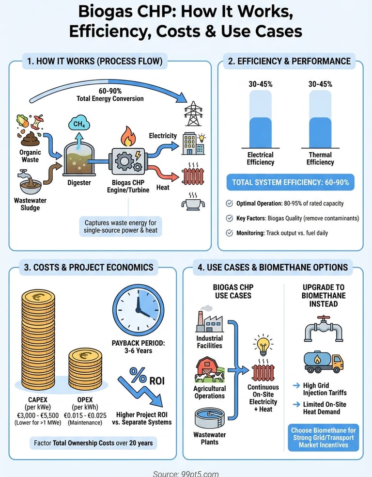 Biogas CHP: How It Works, Efficiency, Costs, and Use Cases