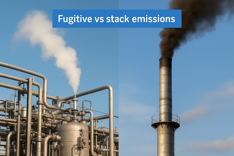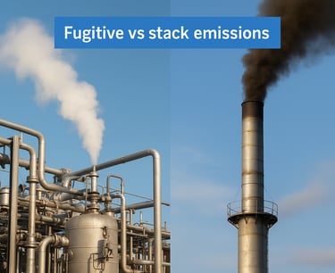 Stack emissions give you real-time data; fugitive emissions force you to rely on periodic surveys and statistical correlations, creating larger uncertainty in your total greenhouse gas inventory.