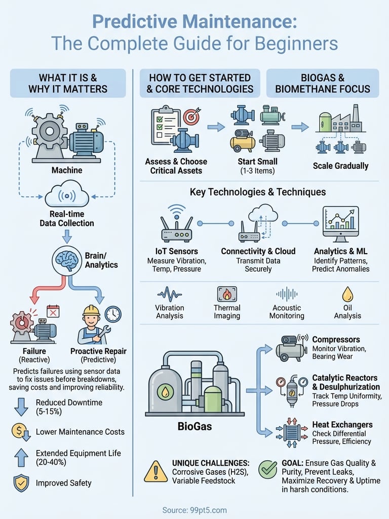 A complete guide to what is predictive maintenance for beginners. Learn to prevent breakdowns, reduce costs, and apply it to BioGas processing systems.